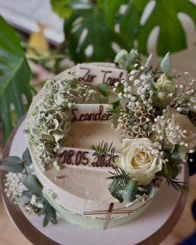 Ob mit echten Blumen aus dem Brautstrauß oder mit liebevoll gestaltetem Dekor – ihr entscheidet, was zu euch passt.